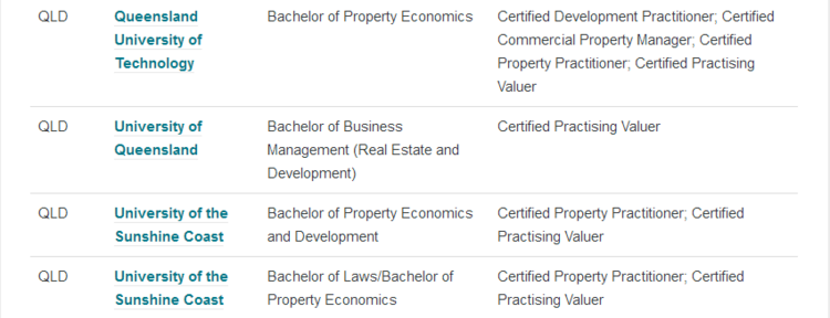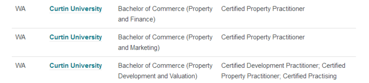 其中,被澳洲房地产协会API认证的课程有: