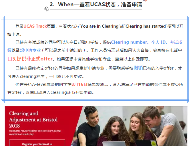 不要着急,一切还未尘埃落定!为了尽量避免同学们遭遇“滑铁卢”,UCAS申请系统为大家提供了最后一次调整机会,那就是我们的“Clearing”高校补录程序。