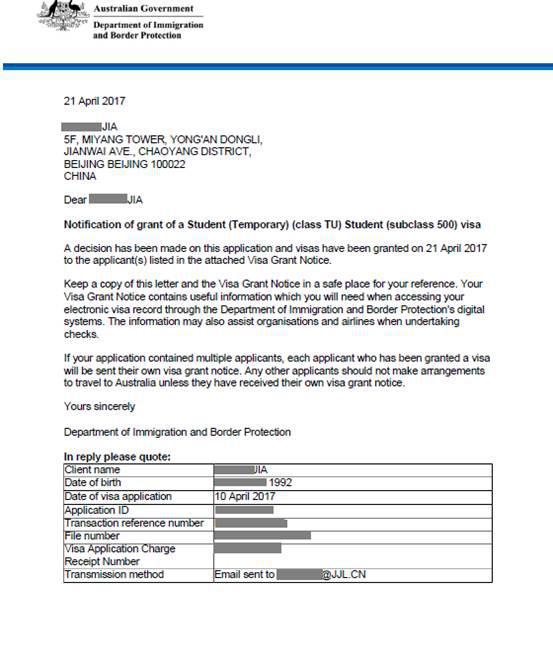 在签证方面,由于学生递交雅思成绩较晚,递签时间和语言开课时间只相差仅两周,为能顺利获签让学生尽可能提供各项完整的签证基础和经济材料,做了很详细的电话调查辅导,以及提前为学生做了晚报道申请。最终,在资深顾问王念云老师和签证老师的帮助下,学生顺利在开学前获得了澳大利亚留学签证,成功赶上开课时间!