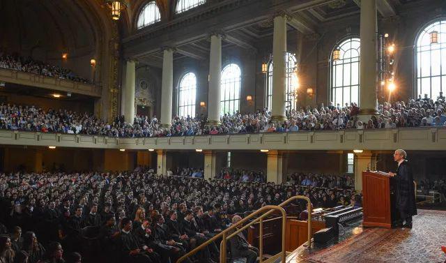 现在整个世界在你们面前,请你们携手慢移流浪的脚步,向世界带去你在耶鲁教育中获得的一切:虚心聆听,批判地参与,创造性地应对挑战和难关,在寻求幸福的同时接受你的责任,画一个更广阔的圈包容和理解这个世界。
