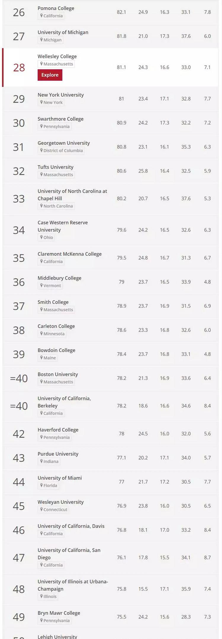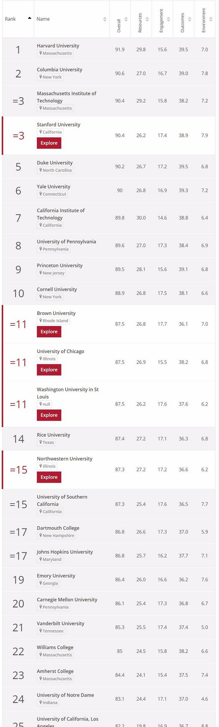 前10名中,哈佛大学依旧抢镜,荣登榜首;而宾夕法尼亚大学即使有沃顿商学院加持,却还是降至第8位;在各大学术排名中,能全球前10、全美前3的芝加哥大学遭遇滑铁卢,排名第11位;一直吊车尾的布朗大学凭借“常春藤”名号并列第11位,不容易…UC系更可怜…你们直接看吧…
