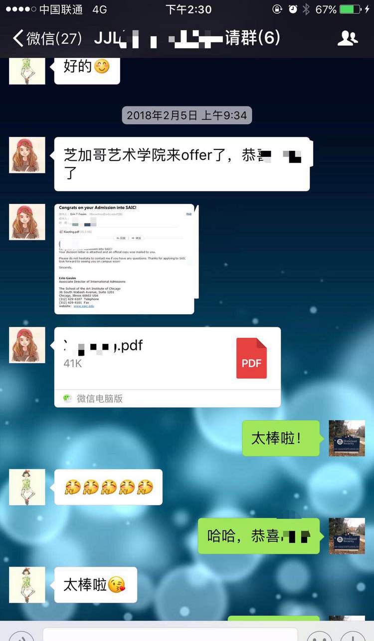 学生软硬背景相结合,最后终于成功拿到多枚顶级艺术大学的offer。