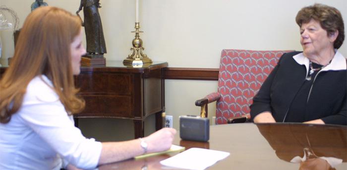 Sam Lucy说,因为面试的时间是冬天,每年都会看到学生穿太薄,再加上紧张,面试时冻得直哆嗦。她建议学生穿自己觉得最舒服的衣服,穿T恤衫和牛仔裤完全没问题。