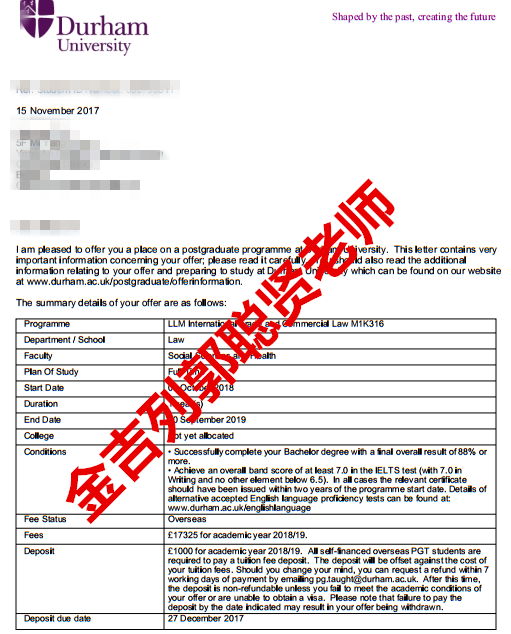获得了Durham、KCL、Manchester、Bristol、Queen Mary法律相关专业的offer。