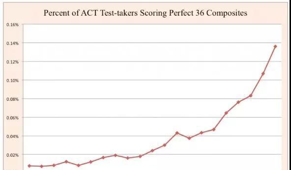 但是在2017年的时候,ACT拿到满分的考生已经占到了0.14%,相当于每735名参加ACT考试的学生中,大约有1人就取得了满分。