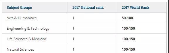 这五大学科门类分别为:艺术人文类、工程技术类、生命科学与医学类、自然科学类,以及社会科学与管理类。其中,UCD艺术与人文领域排名世界前100,其他四项也进入世界排名前150。学科子类中有两门学科表现尤为突出,兽医学排名世界第29位,英语语言及文学世界排名第45位。另外,UCD还有其他11门学科排名进入世界前100。