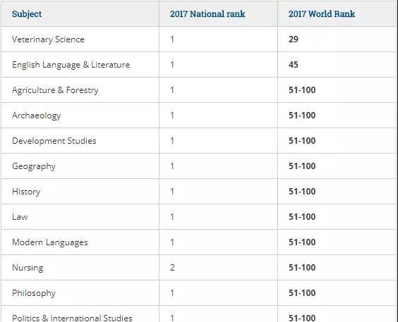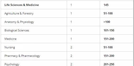 生命科学与医学类专业除了医学学科之外还包括农业林业、牙科、护理等学科。UCD最强势的兽医学科就在这一门类下啦~农业与林业学科和护理学科也进入了世界100强。