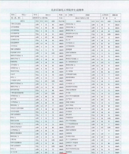 司女士,本科是北京石油化工学院,学的高分子材料与工程专业!和工程造价不搭边!