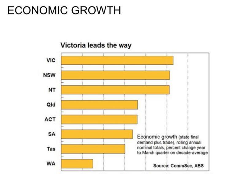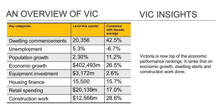 维多利亚州本季度的经济活动比其十年平均产出水平高26.5%,仅去年一年的增长速度为6.4%,比去年当季度的新南威尔士州还高。
