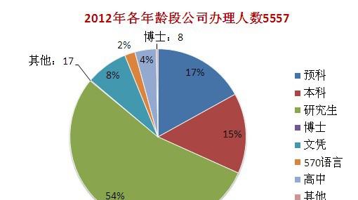 这张图表显示了我们公司2012年的办理人数,我们主要的对象最大的一部分是大学生申请硕士,其次是高中生申请预本科,这两部分生源占到了将近90%,剩下的就是文凭课程,高中,以及570的语言,还有极个