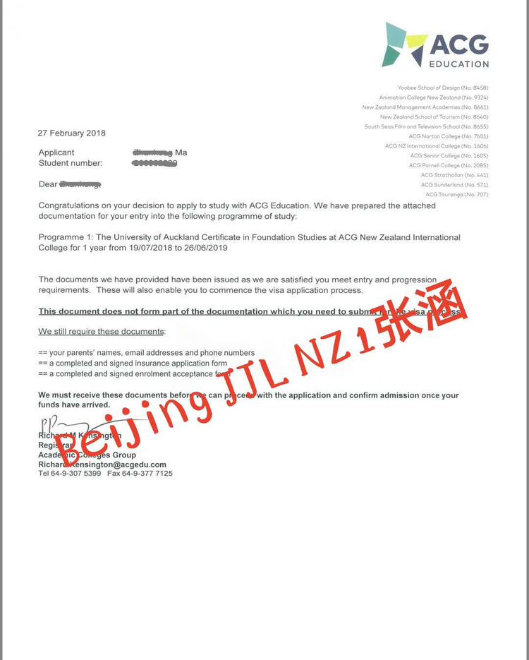 申请结果;拿到ACG预科offer,并于2018年4月顺利获签
