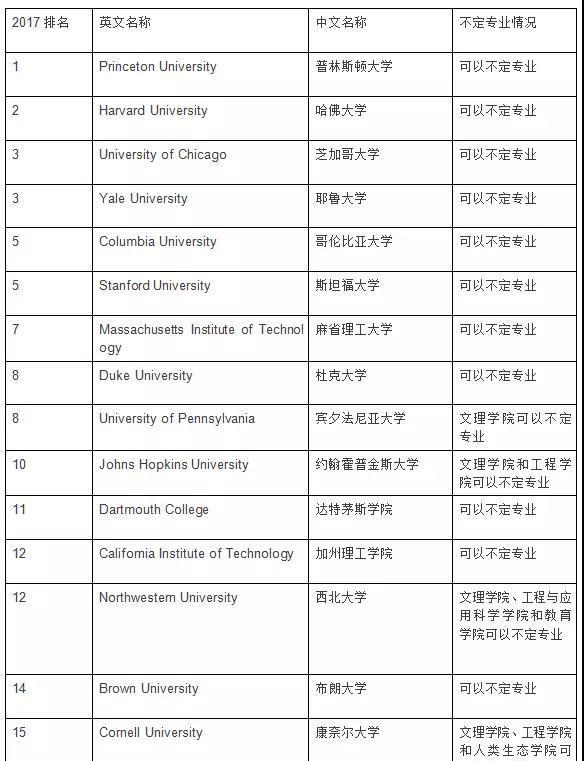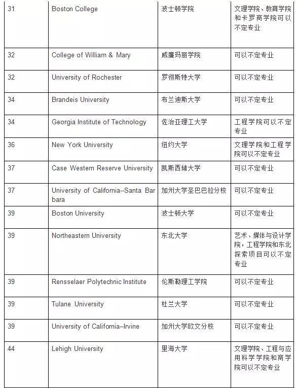 最后附上美国TOP50综合性大学和文理学院对于专业定向的具体规定: