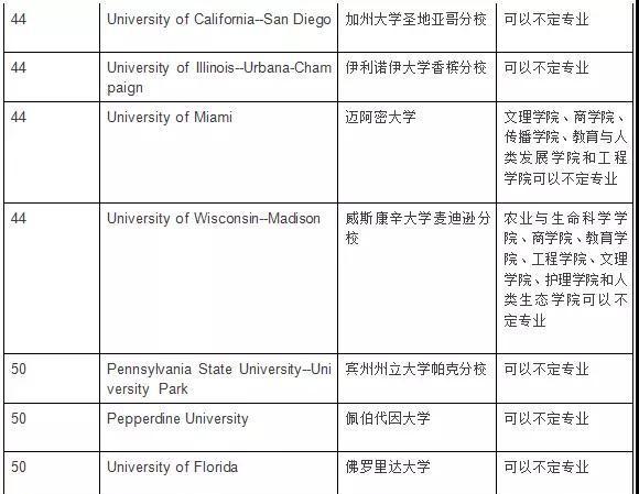 TOP50综合性大学不定专业要求