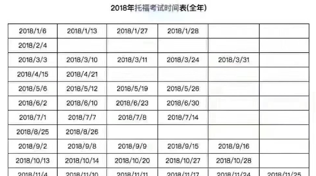 附件为2018年托福、雅思考位时间表: