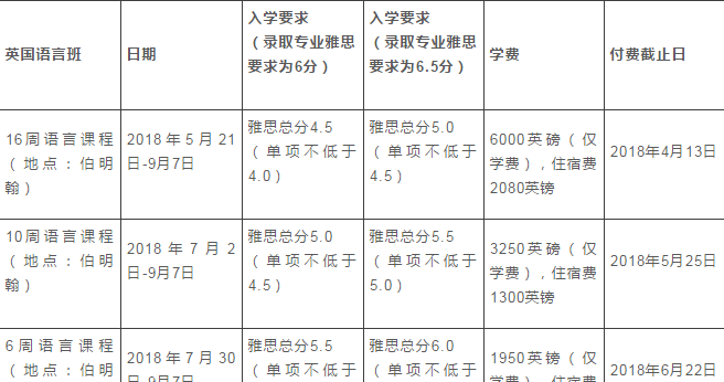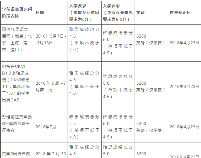 雅思成绩为4.5分(且单项不低于4.0分)的学生需要参加英国16周或中国10周+英国6周的英语强化课程