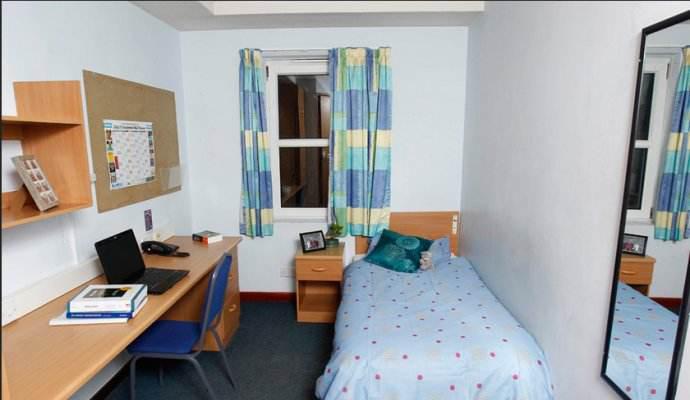 就是普通的一间卧室(都带窗户),里面有床(一般都是单人床),书桌,衣柜,这里分为两种,一种是standard rooms with washbasin,就是指这间卧室里有一个小洗手盆(以及一个带小灯的大镜子),一般情况下这种房间不会潮的。还有就是普通的不带洗手盆的房间。这种房间一般都会有专人定期打扫清理。卫生间和厨房是公用的,公用人数不一定,有一些麻烦,但是价格不高,某些提供包餐服务的这类宿舍,其厨房是不允许做饭的,里面只有一个冰箱和微波炉。