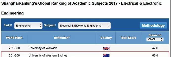 再来看,西悉尼大学电子电气工程,位列世界第200-300,同一个级别里还有英国华威大学,美国耶鲁大学的电子电气工程。