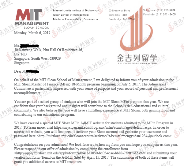 录取结果Massachusetts Institute of Technology 麻省理工学院                  Cornell University  康奈尔大学金融工程