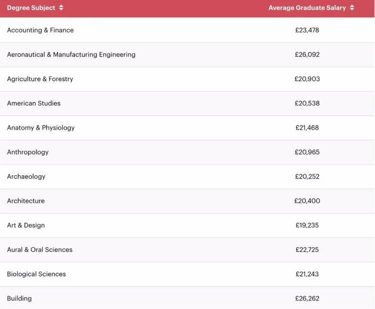 最后,附上英国大学各专业毕业生平均起薪完整版供参考: