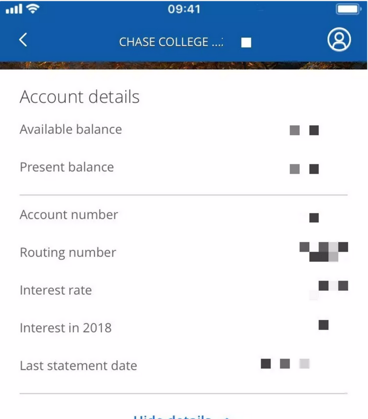 除了这些,在开户的时候,银行还会给你几张支票和账户信息。其中账户信息一定要保存好,里面的account number,routing number 和 swift code 是爸妈从国内汇款时候填表最重要的信息之一,汇款的时候一定要注意汇到哪个账户上。(Chase App的界面,上面有account number,routing number。这两个一定要保存好)