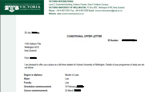 胡秋平老师将赵同学的案例和诉求吿予校方,校方认为通过胡老师办理的学生质量非常高,表示会尽快给赵同学一个合理的录取。3周后,惠灵顿维多利亚大学发来了Master of Laws -一年制法学硕士的录取通知书。