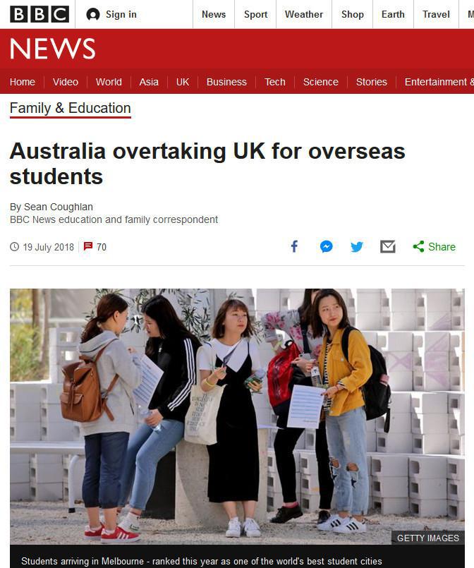 我们都知道,美国一直是全世界学生最喜欢的留学地,其次就是贵族刻板的英国,但是最近数据统计显示,英国第二的位置已经不保,根据BBC报道:澳洲已经超过英国成为世界第二大留学生青睐国度!
