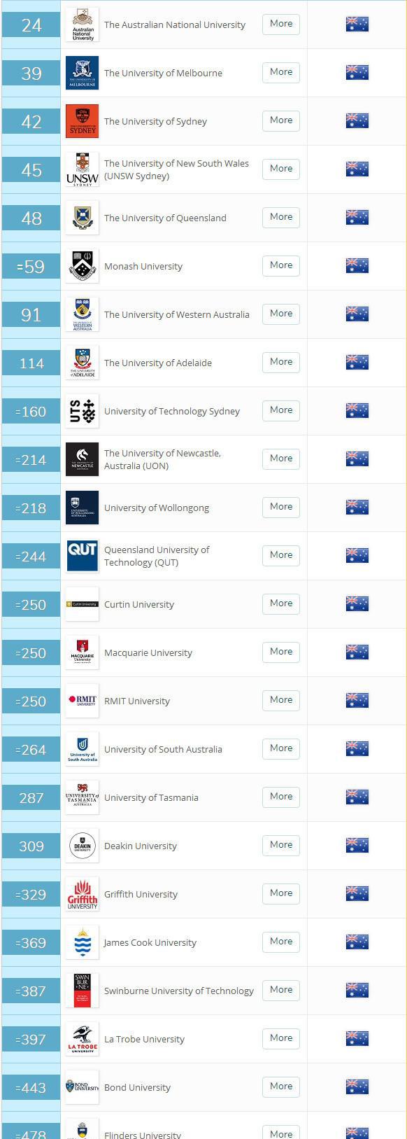 看一看澳洲大学在全世界的排名吧:2019世界大学排名澳洲版
