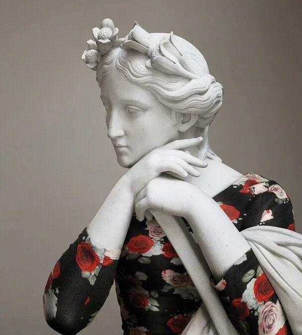 The Classical Now”展出的作品从古希腊和罗马的文物(青铜,陶瓷,大理石)现当代绘画,雕塑,录像和摄影作品。其中在希腊罗马时期的系列大理石、青铜、陶瓷作品旁边,展示了诸如Edward Allington Pablo BronsteinLéo CaillardJean CocteauMichael Craig-MartinAndré DerainHans-Peter Feldmann等人的作品。说到这,就不得不提一下那位喜欢给古典雕塑穿上现代衣服的巴黎艺术家Léo Caillard,他因一组给卢浮宫里的裸体雕像“穿”上了时髦的衣服的摄影作品而出名。