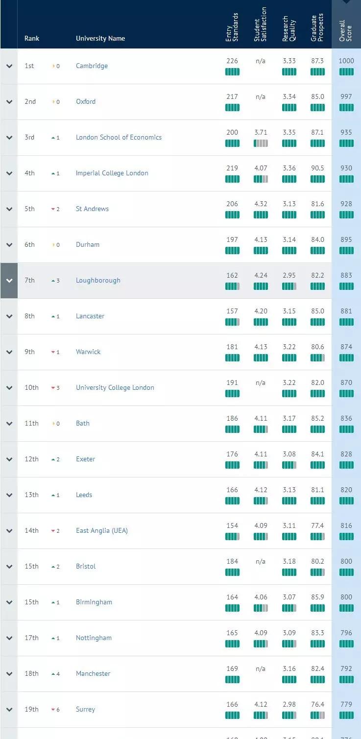 排名前24位的大学里除兰卡斯特大学外,毕业生荣誉学位获得率都达到了80%,不过从去年开始,