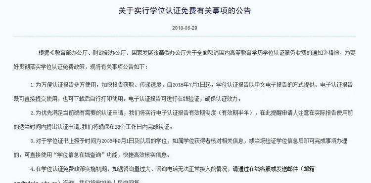 学位网认证2018年7月1号起进行调整