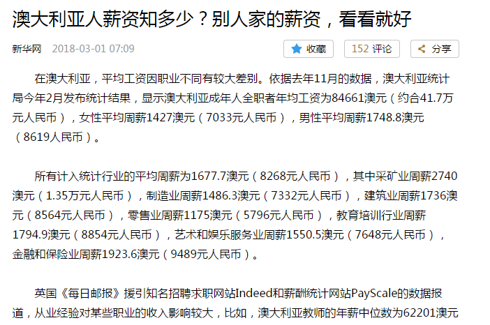 转载自:新华网,澳大利亚众所周知,留学生留学2年后会获得两年的工作签证。看看别人家的薪资吧。教育投资完全可以在毕业之后完全回收,也许您还没不确定是否移民,能确定的是您一定可以将名校学历、工作经验、教育投资统统回来。