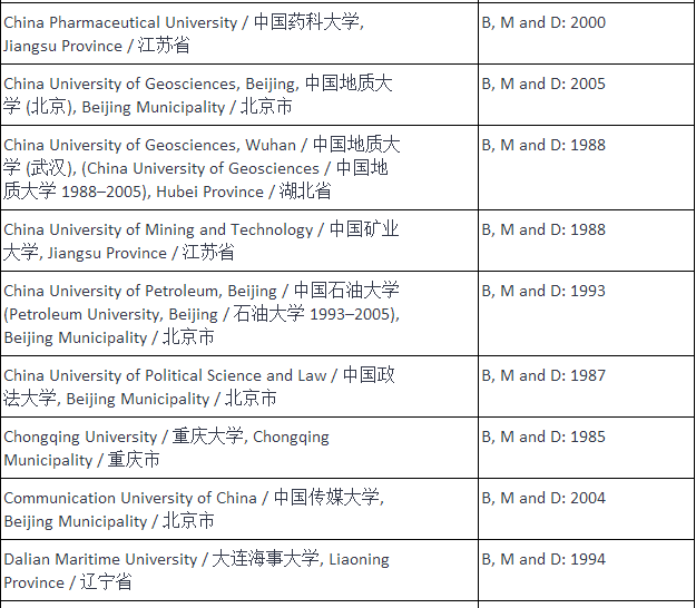 为什么我要知道自己的学历要不要被NZQA认证呢?因为在新西兰移民加分项中,学历是占比最高的。在最新的移民政策中,本科学历可加50分,硕士和博士为70分。如果你毕业于以下院校,并且拿到相应的学位,就可以先申请NZQA的认证,然后拿到相应的加分。是不是听起来很赞?!下面的表格,好好看。