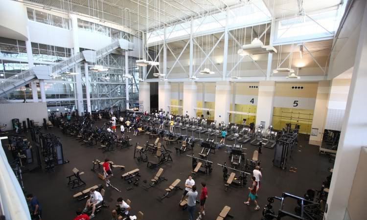 纽约大学的健身中心即使身处纽约市中心“大苹果”(the Big Apple)的房地产中,仍占据了14万多平方英尺的面积。它设计独特,有五层之高,每个楼层都有不同的锻炼器材。在屋顶上有棒球练习场、网球场和慢跑道;水上运动中心有一个六道泳池、带多个跳水板的跳水池,以及一个桑拿浴室;其它楼层还有摔跤是、壁球场、1000平方英尺的攀岩墙和多用途运动场。