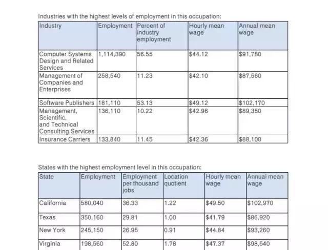 从以上数据可以看出计算机专业在美国的就业是非常不错的,毕业生在美国的需求量大,甚至可以说是美国就业最好的专业,薪酬水平最高的专业之一。由上表可以看出,计算机相关专业人员的平均薪酬超过8.7w/Year 美金,就业率最高的是加州,其次是德州,因此大部分中国学生在选校的时候集中考虑这些地区,也因为这样,这些地区的申请难度也逐年上升。
