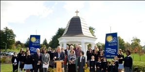 奥尔巴尼市长Gerald D. Jennings,在学校125周年校庆上与学校师生合影